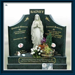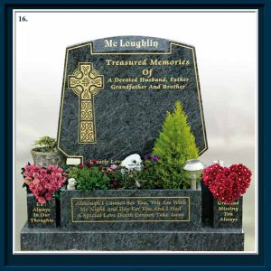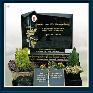 Memorial design, layout and proofing is free as well as no obligation home calls. We will work on renovation, chippings, flower vases and plaques etc and all memorials are guaranteed and can be insured. We also provide temporary markers, plaques and wooden crosses. We also manufacture granite kitchen tops in all colours.