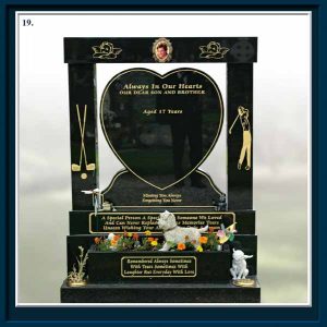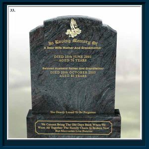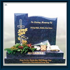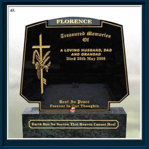 From high quality standard headstones to one of a kind custom bespoke memorials, every taste and preference is catered for with the same craftsmanship, attention to detail and customer care. We offer the keenest prices with no hidden extras. Computerised, hand carved and lead lettering is also available. We also offer additional inscriptions, re-lettering and re-guilding as well as granite signs and house names.